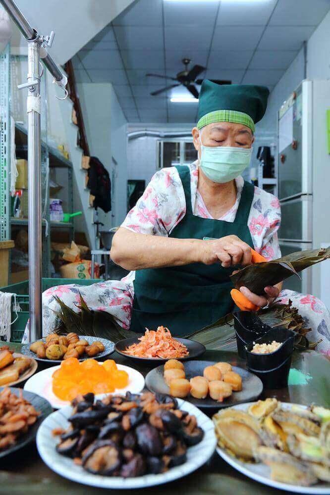 粽子必須由純手工製作,一顆一顆都是阿姨、阿嬤用心包出來的,